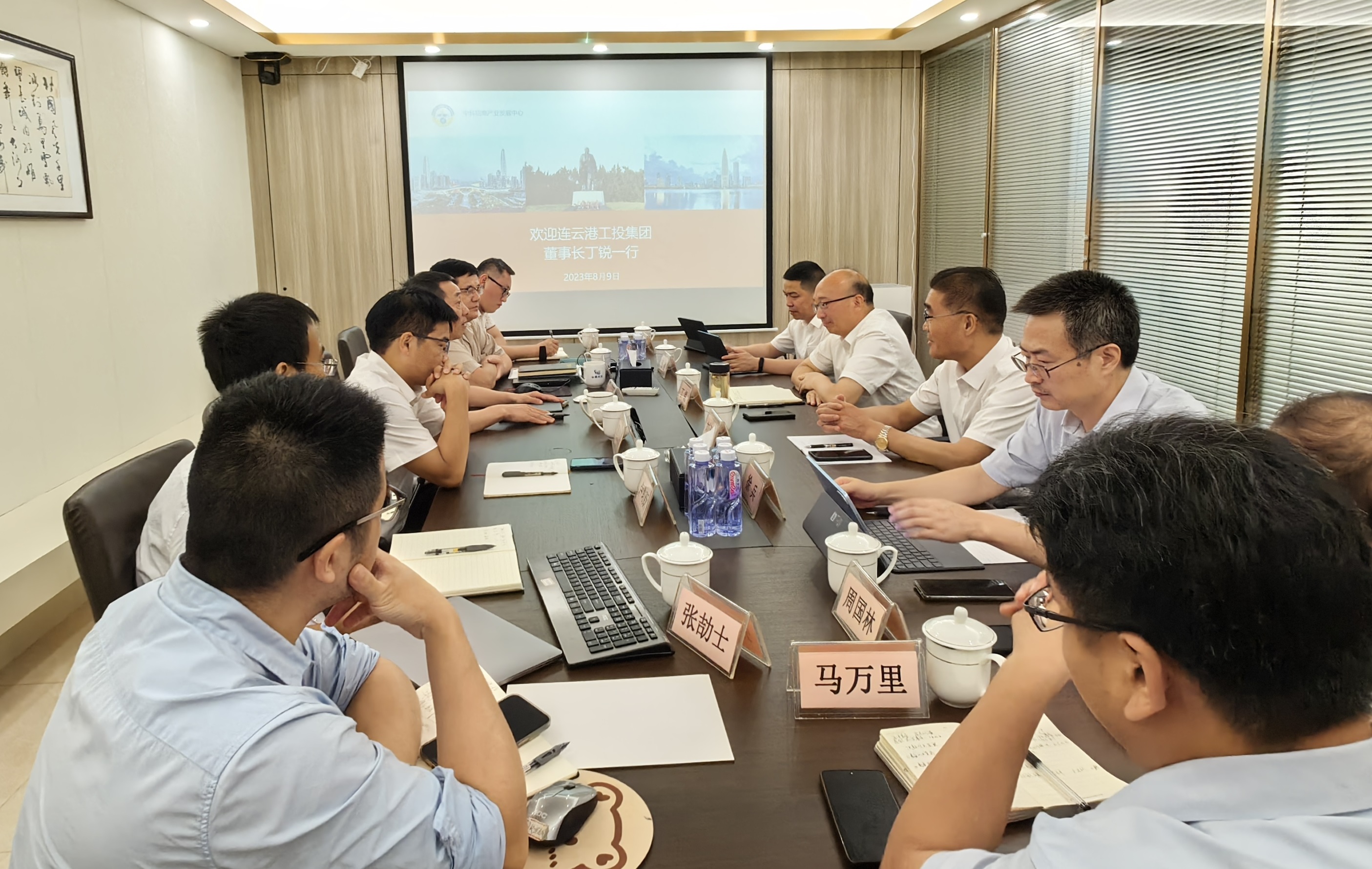 8月9日,集團公司黨委書記、董事長丁銳,副總經理劉承志等一行赴深圳拜訪中科招商集團,就深化招商引資、基金投資等領域合作進行座談交流。集團投資發展部,資產管理公司、產業發展公司、金橋私募基金公司等相關人員陪同。