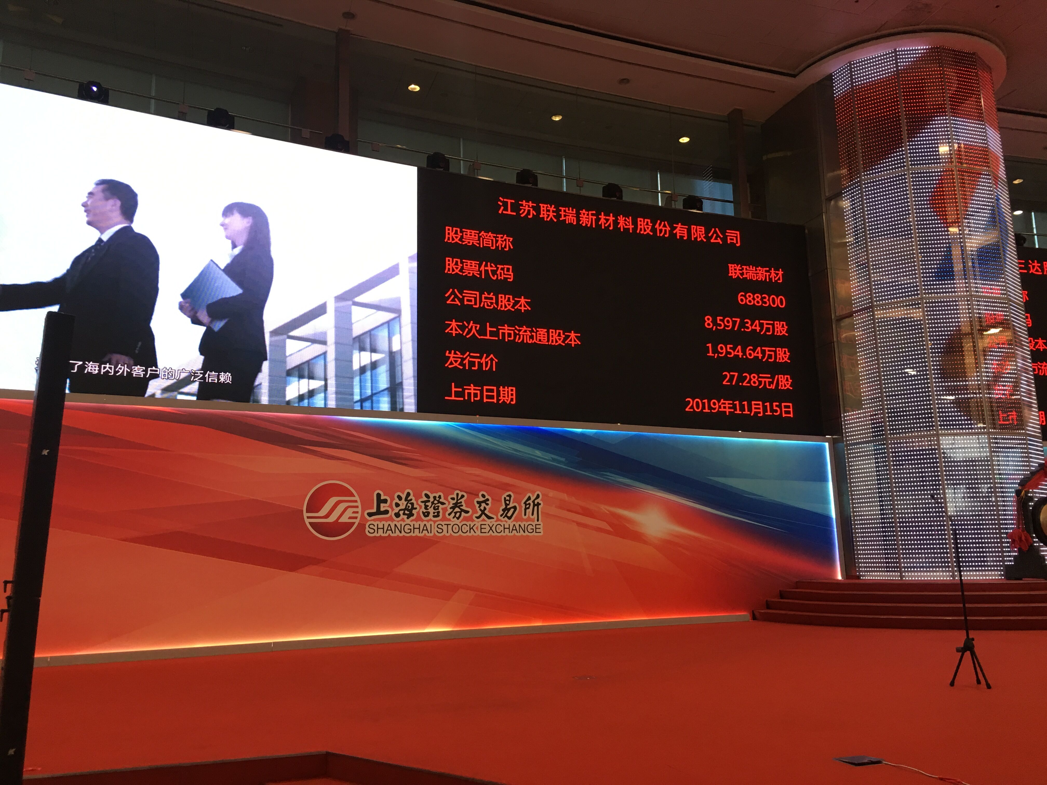 11月15日上午9時30分,工投集團產業基金投資企業——江蘇聯瑞新材料股份有限公司(以下簡稱“聯瑞新材料”)首次公開發行A股上市儀式于上海證券交易所舉行。集團公司黨委書記、董事長楊龍,資產管理公司有關人員受邀出席儀式。