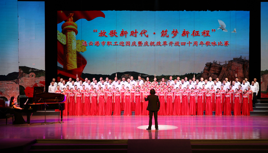 928日下午,由市委宣傳部、市總工會、市文廣新局聯合舉辦的“放歌新時代·筑夢新征程”——連云港市職工迎國慶暨慶祝改革開放四十周年歌詠比賽在市藝術中心隆重舉行。來自各縣區、各條戰線的16支代表隊參加比賽,經過3個多小時緊張角逐,集團公司組織的100人合唱隊以《走向復興》、《天路》兩首激昂向上的歌曲脫穎而出,獲得一等獎。