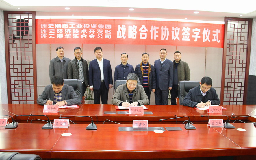 1月4日上午,集團(tuán)公司與連云經(jīng)濟(jì)開發(fā)區(qū)、連云港華樂合金公司舉行戰(zhàn)略合作協(xié)議簽約儀式,集團(tuán)公司總經(jīng)理胡建明、總會計師匡友本,連云區(qū)委常委、連云開發(fā)區(qū)黨工委書記張其兵,連云港華樂合金公司董事長陸大淦等出席簽約儀式。