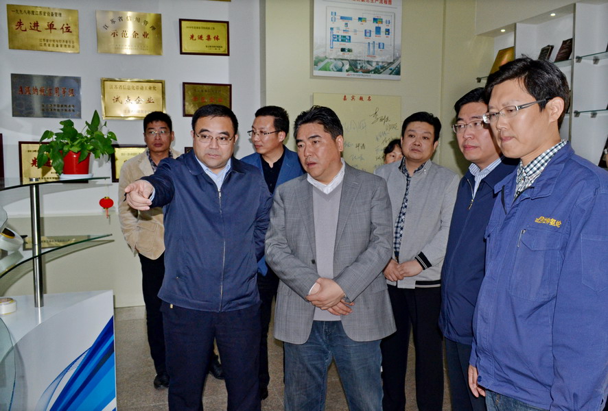 113日下午,市長項雪龍,市委常委、開發區黨工委書記曹衛東一行到氨綸公司實地調研項目建設情況。集團公司董事長、黨委書記楊龍陪同調研。