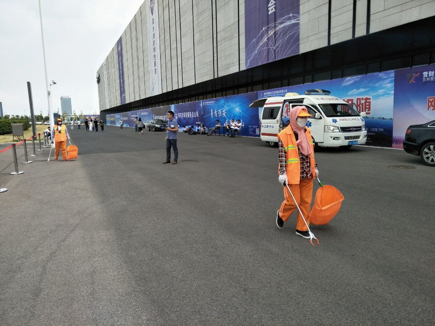 914日,連續(xù)忙碌了兩個(gè)禮拜的職工們還沒(méi)來(lái)得及休息,便又投入到“連博會(huì)”的準(zhǔn)備工作中去。由于本屆“連博會(huì)”共有來(lái)自27個(gè)國(guó)家和地區(qū)的420家企業(yè)參展,展覽總面積達(dá)3.7萬(wàn)平方米,各家展商在布置展臺(tái)時(shí),各類生活垃圾、裝修垃圾等一度將該公司布設(shè)的100多個(gè)垃圾桶都塞滿了,在安排好人工清理的同時(shí),該公司還安排垃圾清運(yùn)車對(duì)積存垃圾進(jìn)行清理清運(yùn),組織灑水車對(duì)會(huì)場(chǎng)及周邊道路進(jìn)行沖洗,一直到918日晚上9點(diǎn)左右才完成準(zhǔn)備工作。19日“連博會(huì)”開(kāi)幕當(dāng)天,負(fù)責(zé)現(xiàn)場(chǎng)保潔工作的職工們?cè)缟?/span>6點(diǎn)多就趕到了會(huì)場(chǎng),冒雨在會(huì)場(chǎng)周邊開(kāi)始忙碌,一臺(tái)大型清掃車和一臺(tái)灑水車也在會(huì)場(chǎng)旁隨時(shí)待命。到了中午,當(dāng)展商們?cè)谑覂?nèi)小憩的時(shí)候,室外的職工們?yōu)榱瞬坏⒄`事,站在風(fēng)口匆匆地扒拉兩口混雜著雨水的盒飯,就又投入到緊張的清理工作中去。僅19號(hào)開(kāi)幕當(dāng)天,累計(jì)清理各類垃圾7噸左右,為“連博會(huì)”的正常召開(kāi)提供了一個(gè)干凈、整潔的會(huì)場(chǎng)環(huán)境。