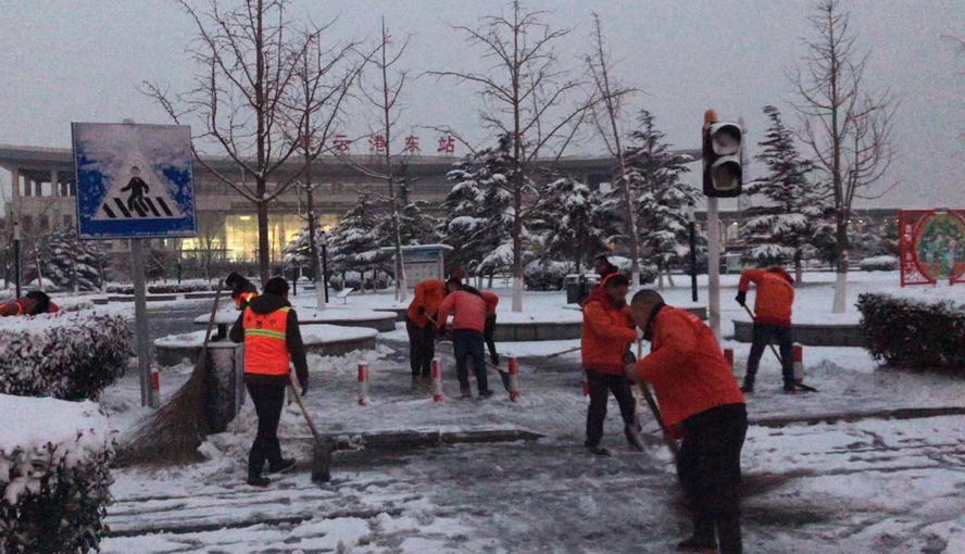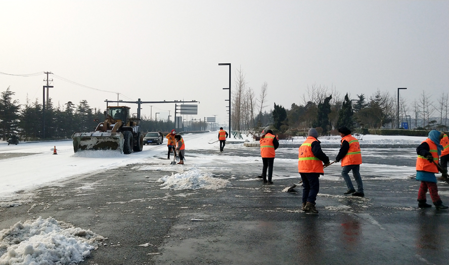 由于28日最高氣溫只有1度,路面積雪很難融化,當天又恰逢周末,是居民大量外出的時段。為了確保人、車流高峰期間交通安全,華茂公司職工放棄周末休息,精心組織,緊密協調。從早上7點起,就組織工人在花果山大道、黃海大道、東方大道、新光路下穿涵洞、火車站匝道等路段撒布氯化鈣,加速積雪融化,防止路面低溫降雪產生冰凍,為及時掃除冰雪和確保居民正常出行提供保障。該公司組織職工近300人次,鏟車、平板車、裝載機、工程車輛等作業機械十余臺(班)投入到掃除積雪工作中去,使用氯化鈣十余噸。截止28日下午4時,經過近一天的緊張作業,各條主干道積雪基本清理完畢,道路恢復通暢。