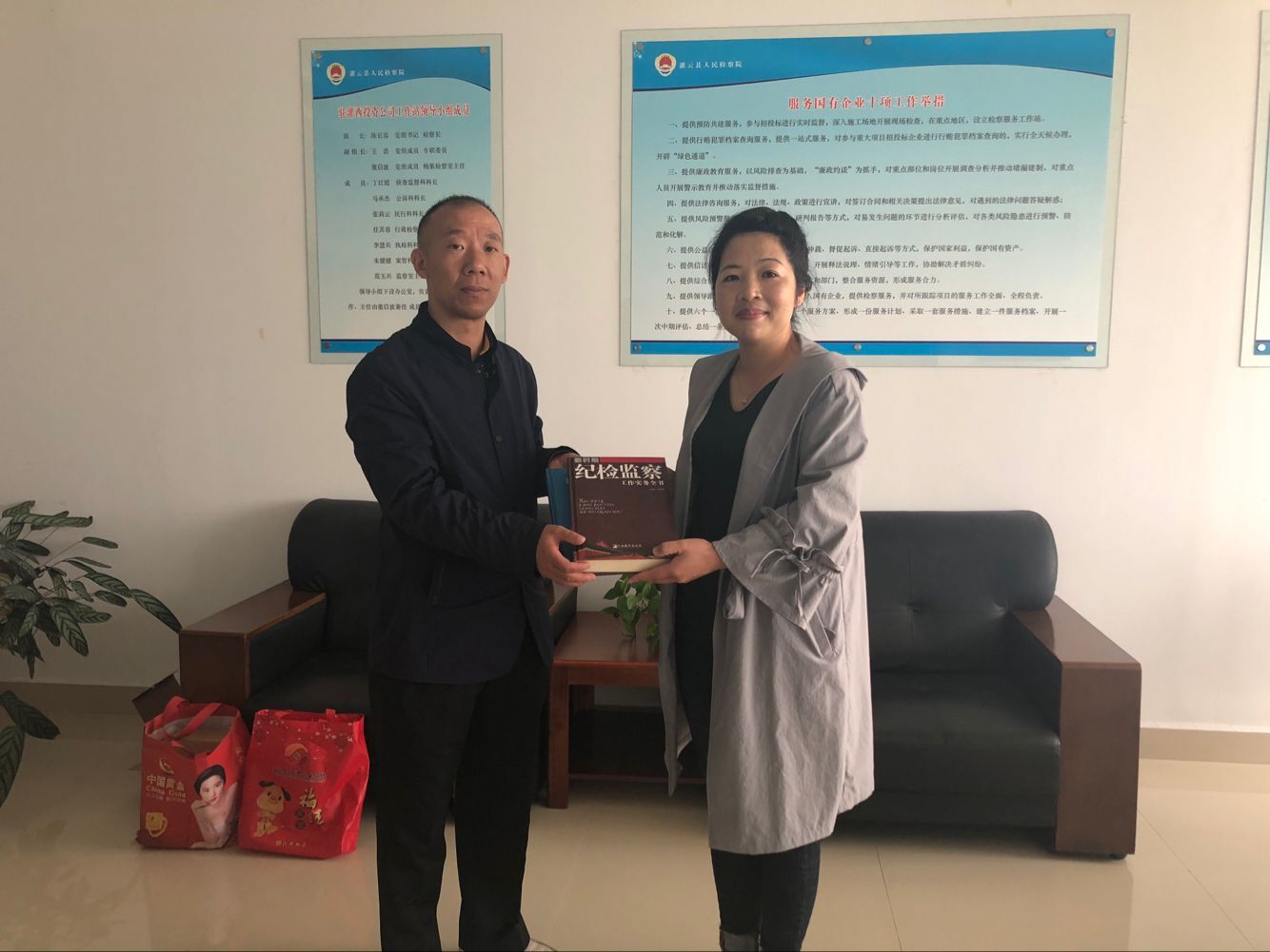 10月17日,灌云縣檢察院監(jiān)察室主任范玉兵到灌西投資公司紀(jì)委調(diào)研工作,進(jìn)一步加強(qiáng)檢察院與企業(yè)溝通和了解,促進(jìn)檢企共建活動(dòng)深入開展。
