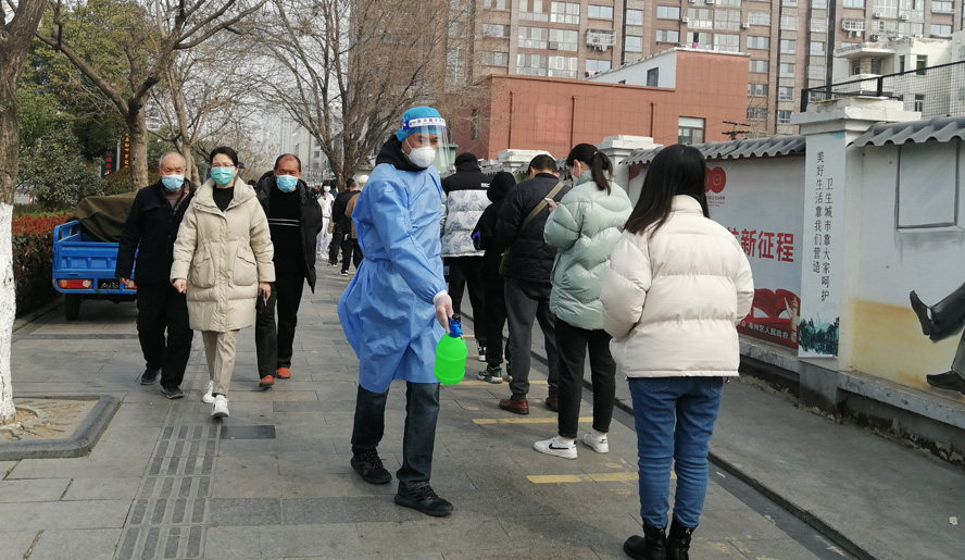 他們是知險(xiǎn)而為的逆行者。疫情發(fā)生以來,投資公司各級黨組織深入推進(jìn)“黨旗飄一線、戰(zhàn)疫沖在前”黨內(nèi)專題教育實(shí)踐活動(dòng),涌現(xiàn)出王同林、汪洋、楊波、丁樂東等一批主動(dòng)請戰(zhàn)上“疫”線的志愿者,成為港城“疫”線那一抹“天使白、志愿藍(lán)”風(fēng)景里熠熠生輝的“徐圩點(diǎn)”。他們受居家隔離因素制約,就近參加街道社區(qū)的疫情防控工作,協(xié)助社區(qū)全方位開展核酸檢測、電話查訪、信息錄入、樓戶排查、場所消毒、巡邏宣傳等志愿服務(wù)工作。他們中間既有夫妻齊上陣,也有父子同站崗;既有在崗黨員,也有二線黨員。家住興業(yè)時(shí)代小區(qū)的侍作華、趙啟英夫婦,自參加防疫志愿行動(dòng)以來,每天負(fù)責(zé)300份居民物資送貨任務(wù),先是由妻子搬運(yùn)到樓下,再由丈夫挨家送上門。相對于無電梯的多層樓,身穿“大白”的侍作華每天樓梯來回?cái)?shù)十趟,即使是跑酸腿腳、濕透衣服、干了嗓子,也沒有遞減他堅(jiān)持就是勝利的戰(zhàn)“疫”信心。作為工投集團(tuán)防疫志愿服務(wù)隊(duì)隊(duì)員的孫海波,在派駐同科小區(qū)的日子里,每天身穿密不透風(fēng)的“大白”防護(hù)服,一穿就是十幾個(gè)小時(shí)不下身,即便是汗水浸皺了雙手、臉頰勒出了溝痕,仍然馬不停蹄忙著安排人員做核酸、上門排查健康碼情況,近距離接觸黃、紅碼人員,和同事先后完成小區(qū)1000余戶家庭兩次排查和35000人次核酸檢測人員身份信息采集工作。被社區(qū)稱為“志愿書記”的胡可志,從戰(zhàn)“疫”動(dòng)員令發(fā)出的當(dāng)天,就志愿參加平山社區(qū)的防疫工作。一人多角色的他,既是秩序員,也是消毒員;既是喊話員,也是宣傳員;既是居民健康碼的驗(yàn)證員,也是“一米線”距離的監(jiān)督員。在連續(xù)多天的志愿服務(wù)中,也讓社區(qū)人員徹底認(rèn)可他這位不錯(cuò)的“組織員”。悅升公司居家隔離的青年員工潘浩聽說單位值守員工王亮因突發(fā)哮喘舊疾,及時(shí)通過社區(qū)報(bào)備、藥房購藥、卡口傳藥等環(huán)節(jié)把應(yīng)急藥物轉(zhuǎn)送到王亮手中,成為架設(shè)“愛心通道”的有心人。