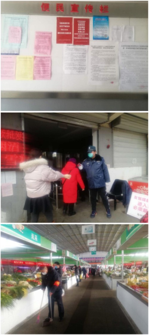 強(qiáng)化市場(chǎng)內(nèi)部管控。為進(jìn)一步避免人群大規(guī)模聚集,調(diào)整市場(chǎng)開(kāi)放、關(guān)閉時(shí)間,緩解人流量,勸導(dǎo)群眾不信謠、不傳謠,無(wú)需恐慌搶購(gòu)。督促農(nóng)貿(mào)市場(chǎng)100多戶經(jīng)營(yíng)戶每天提前全部做好物資的擺放,所有進(jìn)出市場(chǎng)人員保留1個(gè)進(jìn)出口通道依次進(jìn)出,并指派專(zhuān)人在入口負(fù)責(zé)體溫檢測(cè);對(duì)進(jìn)入市場(chǎng)的等各類(lèi)車(chē)輛實(shí)行指定區(qū)域有序停放,確保市場(chǎng)內(nèi)無(wú)占道現(xiàn)象。