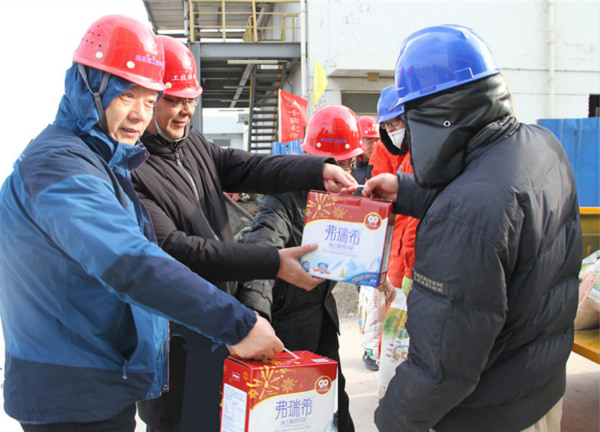 1月26日下午,公司經理孫政權,副經理袁慶國一行深入利海10kV配電工程施工現場,走訪慰問一線職工,送去深切的關懷并將慰問品送到大家手中。