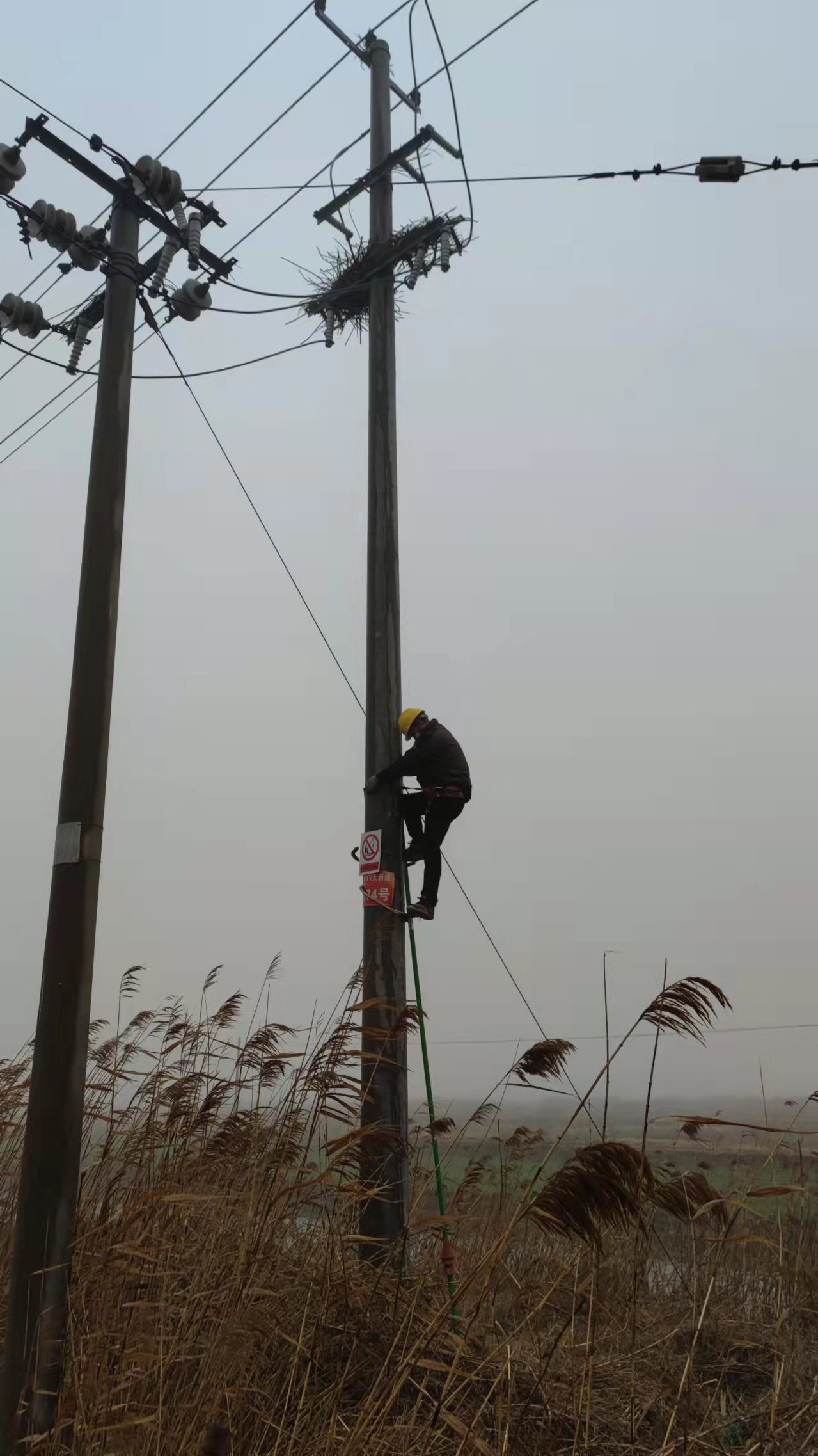 青口供電所清除鳥窩保障線路安全運行