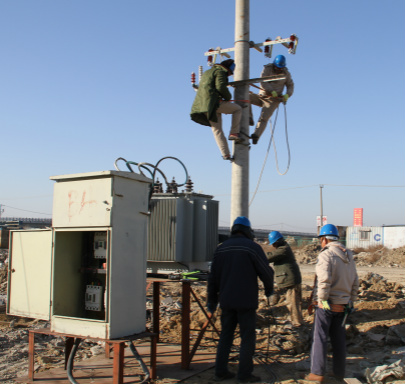 近日,臺北供電所組織職工為金海連云新城醫院項目安裝臨時用電,圖為施工現場。(電宣)