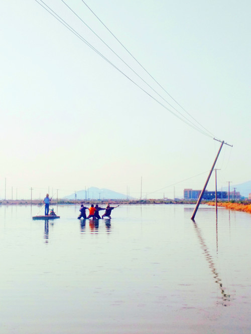 920日,該所組織人員進行搶修。搶修人員經(jīng)過現(xiàn)場勘查后,發(fā)現(xiàn)隱患地點處于池塘中,搶修車輛等大型工器具無法到達,只能靠人工搶修。在與魚塘養(yǎng)殖戶協(xié)商后,俞德春、楊祖加、楊新軍等搶修人員在對低壓線路采取停電、驗電、掛接地等安全措施后,利用小木船來回穿梭、傳送材料,再跳入沒腿深的水里,將電桿扶正、加固。此時,水面上的船、水中的人、拖拽的線路成了鏡頭中的新聞亮點。最后在經(jīng)過半個多小時的特色搶修后,成功恢復供電。(錢明華)