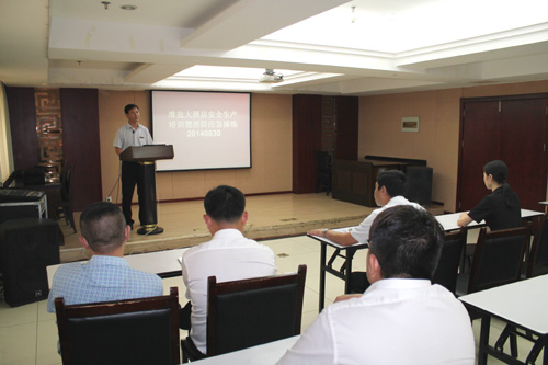 安全宣教一著不讓。該酒店組織全體員工觀看安全事故教育警示片,宣傳安全生產知識,提高員工安全生產意識,營造“安全生產月”濃厚氛圍。活動期間,共召開安全會議2次,下發文件2份,集中安全培訓2次,開展消防應急演練1次。