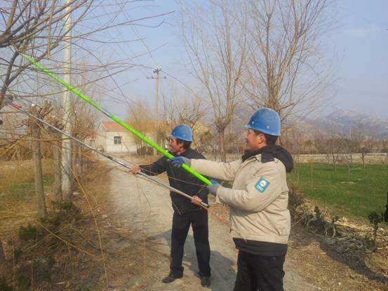 圖為職工在修理線路下的樹枝