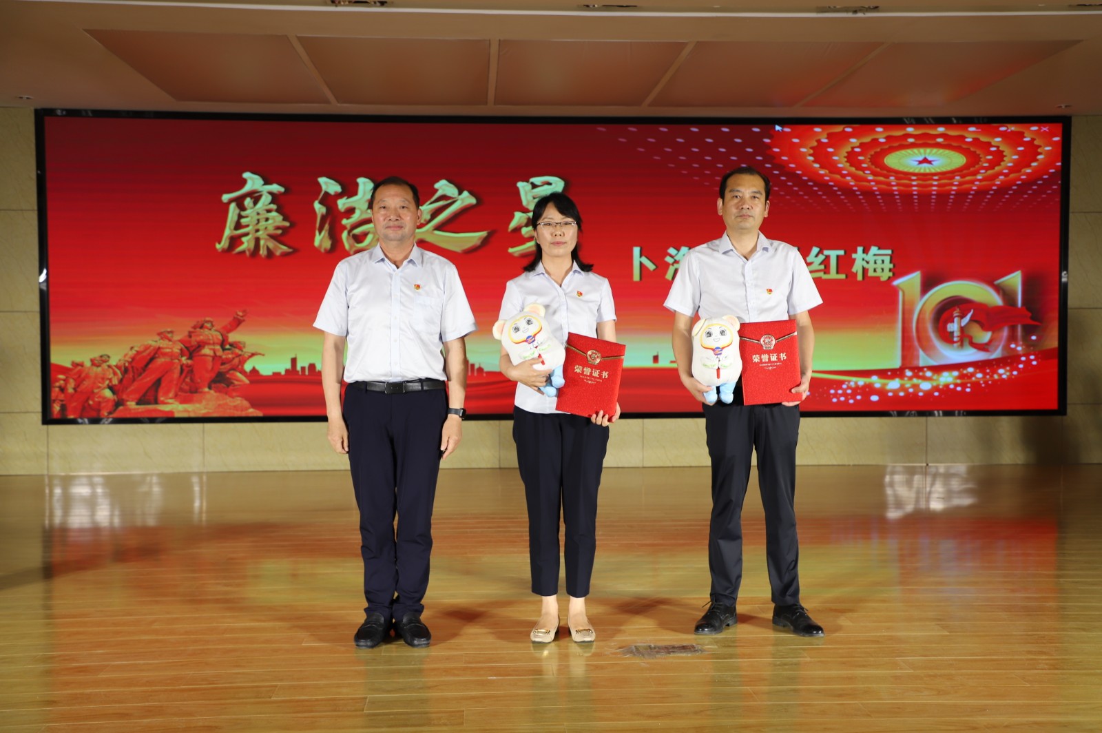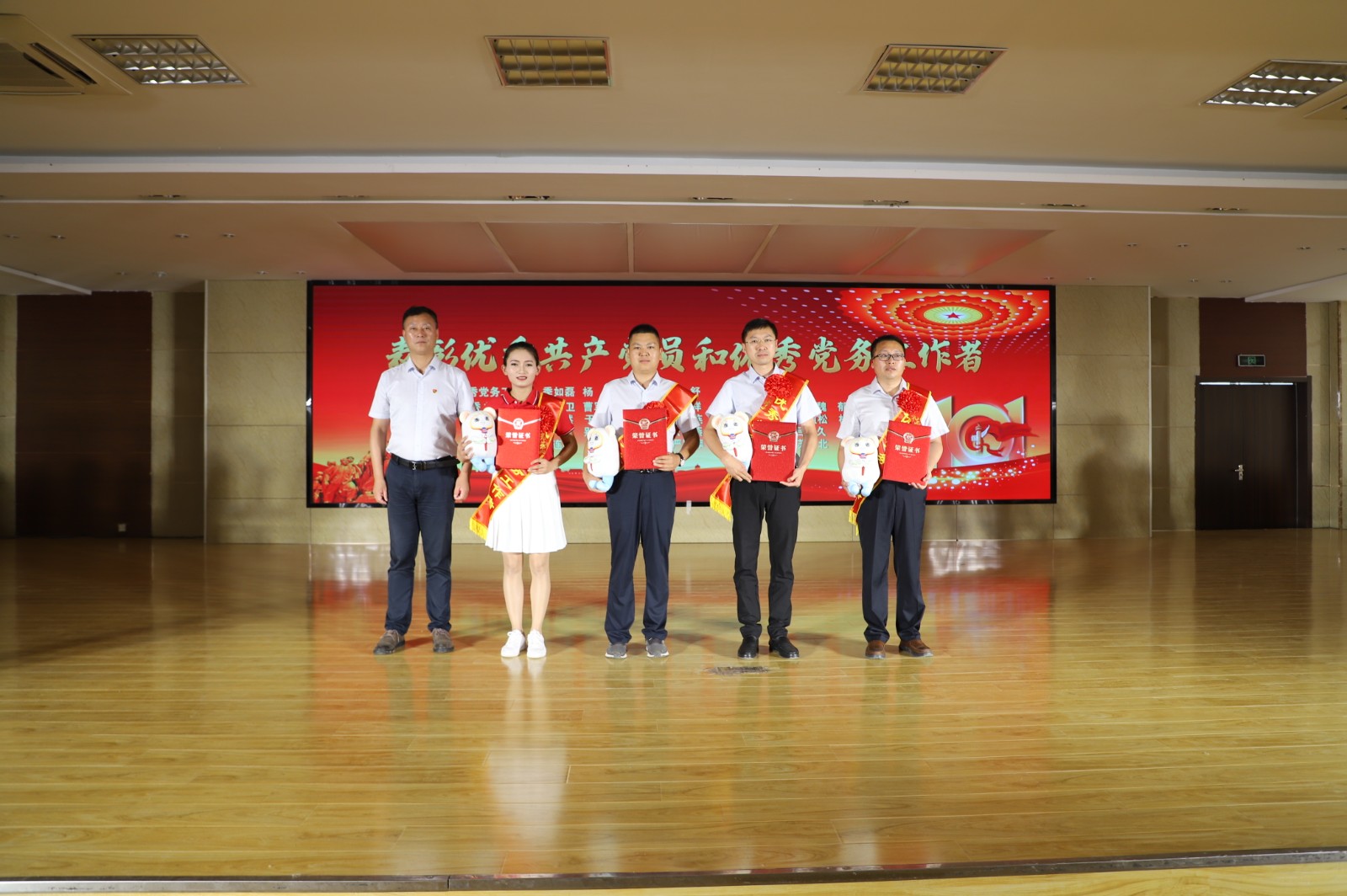 在演出期間,對評選出的先進黨支部、優秀黨小組、“廉潔之星”、優秀黨員和優秀黨務工作者代表進行了表彰,進行黨史類等知識答題活動。(西宣