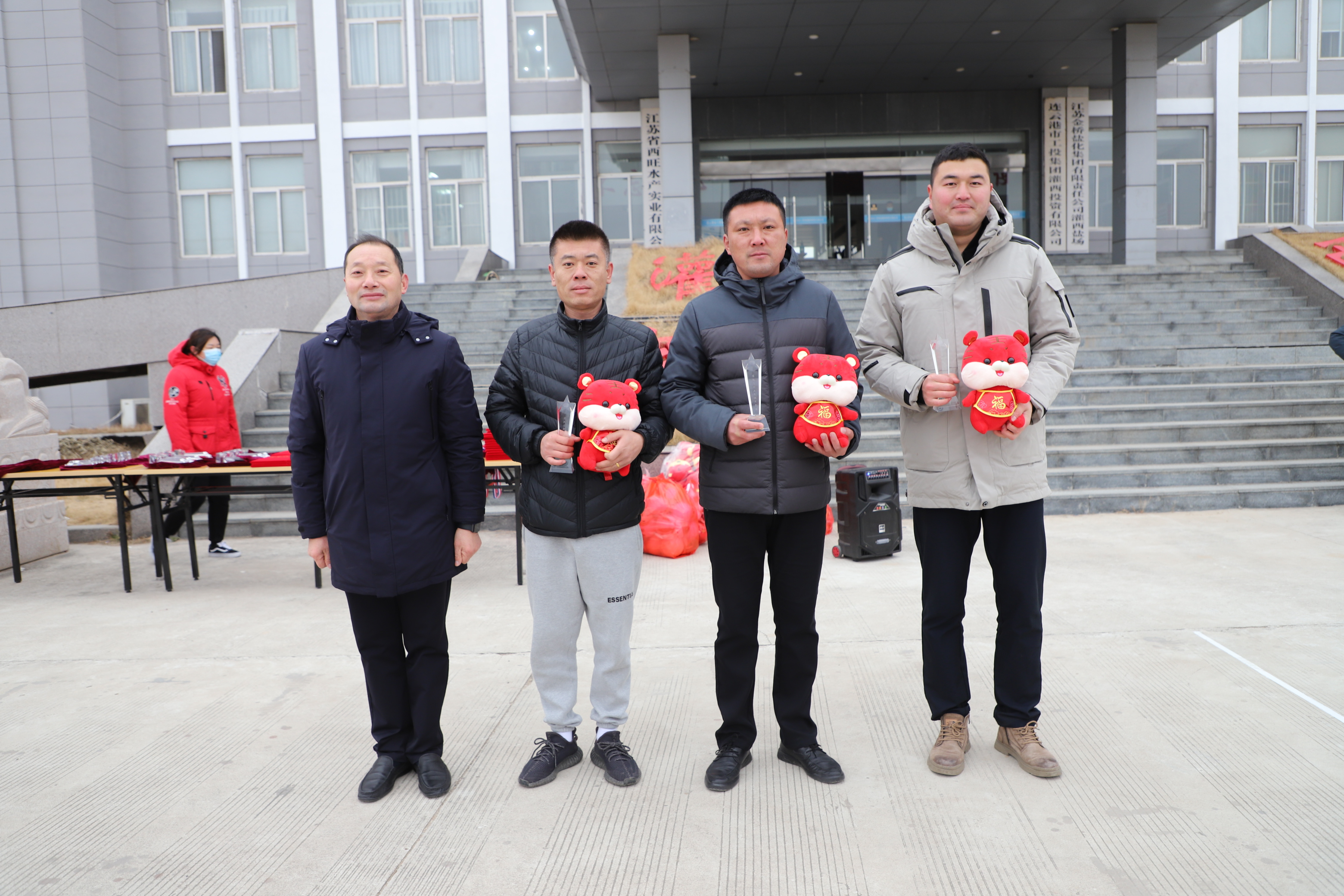 閉幕式上宣布新河制鹽公司、埒南制鹽公司、宵洋物流公司分獲團體一至三名,頒發團體以及個人榮譽證書,為每位獲獎者發放灌西投資公司吉祥物——“鹽寶寶”。(西宣)