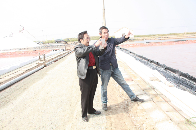 灌云縣知名作家孫澤深來日曬制鹽公司采風