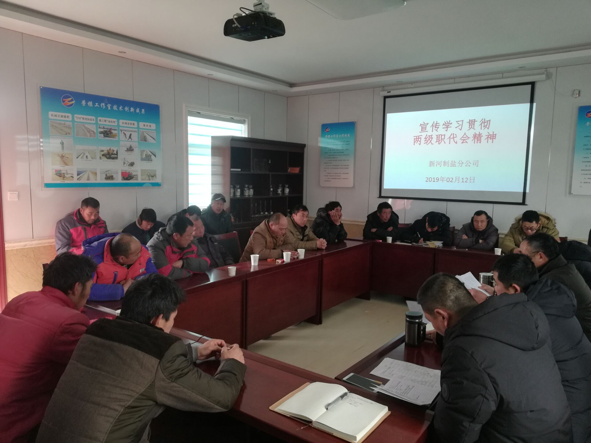 2月12日下午,新河制鹽分公司在安樹林勞模創新工作室召開班組長會議,宣傳學習貫徹兩級公司職代會精神,大家先后學習了工投集團和公司的職代會報告,兩級職代會報告指定目標,展望未來,精神鼓舞人心,為2019年生產繪就了美好藍圖。最后,該公司對2019年的生產工作作重點規劃安排,目標已規劃,任務已明確,一年之計在于春,該公司不等不靠,統一思想,凝心聚力大干當前,為全年完成30萬噸,打下堅定的基礎。(江德前)