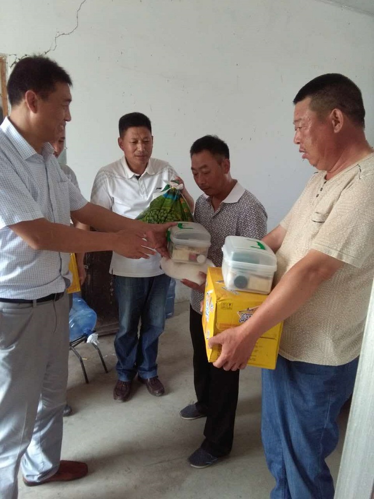 由于近日連續(xù)高溫,西旺水產(chǎn)公司按照投資公司的通知精神,積極行動(dòng)起來,認(rèn)真做好防暑降溫工作。一時(shí)及時(shí)調(diào)整池塘值班點(diǎn)上的人員作息時(shí)間,避開高溫時(shí)段,備好了兩套防暑藥物盒;二是發(fā)放《夏季安全生產(chǎn)防范重點(diǎn)》材料到每位養(yǎng)殖戶,宣傳防暑預(yù)防、中暑急救等知識(shí);三是開展“送清涼”工作,購買防暑物品送到一線員工手里,表示慰問。圖為到西旺公司領(lǐng)導(dǎo)到一線為員工送上防暑物品。(西旺工會(huì))