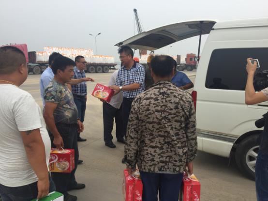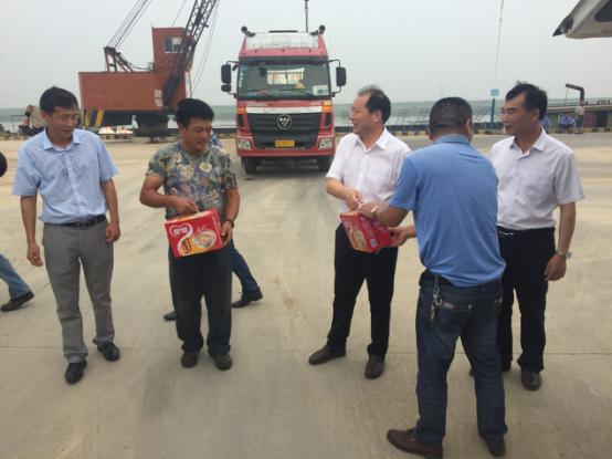 2017年7月18日星期二下午灌西鹽場投資公司領導到宵洋物流有限公司碼頭送清涼看望一線員工!在黨委書記董事長王德志同志、總經理李國文同志、工會主席王保平同志的帶領下親自到我宵洋物流有限公司碼頭看望一線員工,送清涼。炎炎夏日,酷暑當頭一線員工永遠沖鋒在前,領導的關懷更是永不停止!宵洋物流全體員工致謝!(宵洋王然)