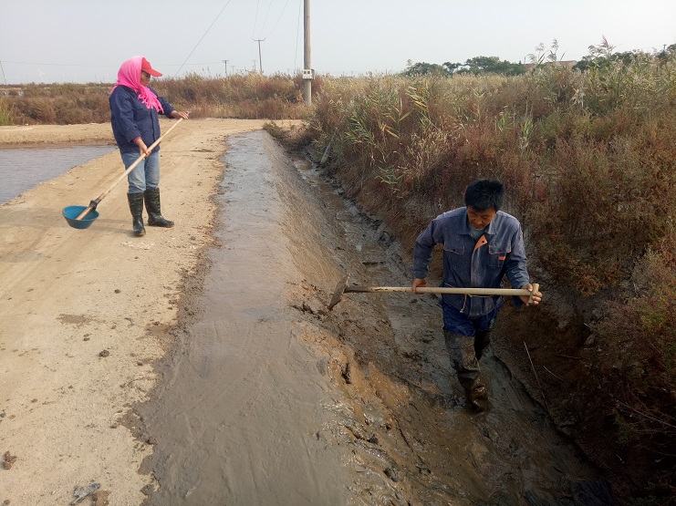 自十一月底召開冬準會議以來,實業公司冬準工作有序進行。分公司柴門區海鹽基地三個班組:撈溝做埝、清理淤塘、整理塑池,做好灘場文明工作。進一步加強對越冬塑池的管理,做好塑布防寒防風工作,以防凍壞或刮壞。加強安全工作:防凍、防火、防雨雪天氣交通安全,安全用電,確保分公司安全生產的良好態勢。