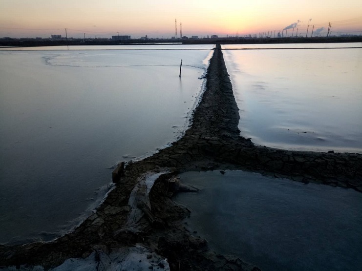 近日,氣溫低至零下八、九度,實業公司柴門區海鹽基地三個班組進行冰下抽咸制鹵。三個班組之前已做好了抽咸的準備工作。班組長清早六點鐘頂著低溫冰凍天氣抽咸:一班抽咸鹵水八千方,二班三千方,三班二千五百方,共計一萬三千五百方。最后做好凍化水排淡工作。(實業公司)