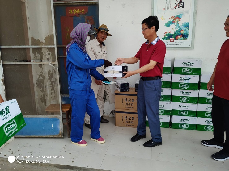 一行人先后來到扒鹽一號機組和二號機組,給堅守在扒鹽一線的工人送上了誠摯的問候,對他們的辛勤勞動表示感謝,為他們送上了純凈水、牛奶等物品。