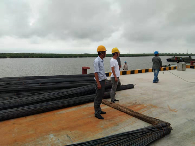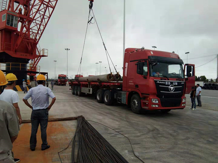 7月17日上午,宵洋物流碼頭迎來了兩艘滿載著管樁的貨船,佇立在岸上,望著滿載貨物的兩艘船,我心生疑慮——如此長的管樁如何從船中取出?