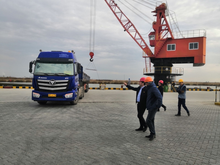 11月21日下午,投資公司董事長、總經(jīng)理李國文,總經(jīng)理助理潘艾衛(wèi)來到宵洋物流碼頭指導工作。宵洋物流負責人沈志兵、書記季汝磊在碼頭場地分別對碼頭經(jīng)營情況和后勤保障工作進行了匯報總結(jié)。