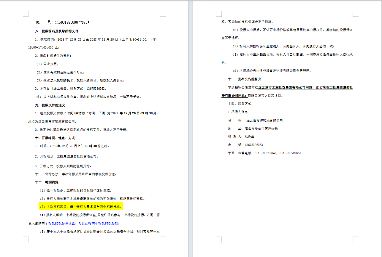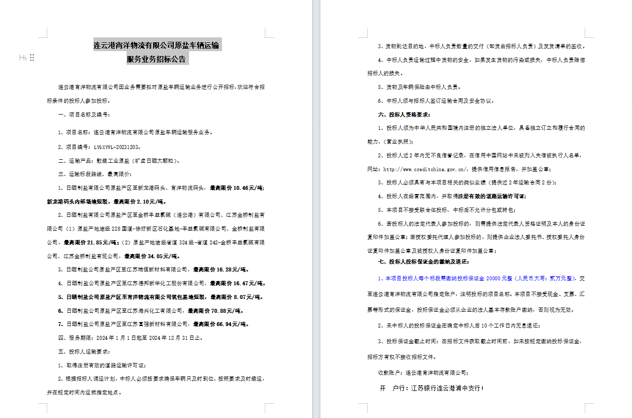 連云港宵洋物流有限公司原鹽車輛運輸服務業務招標公告