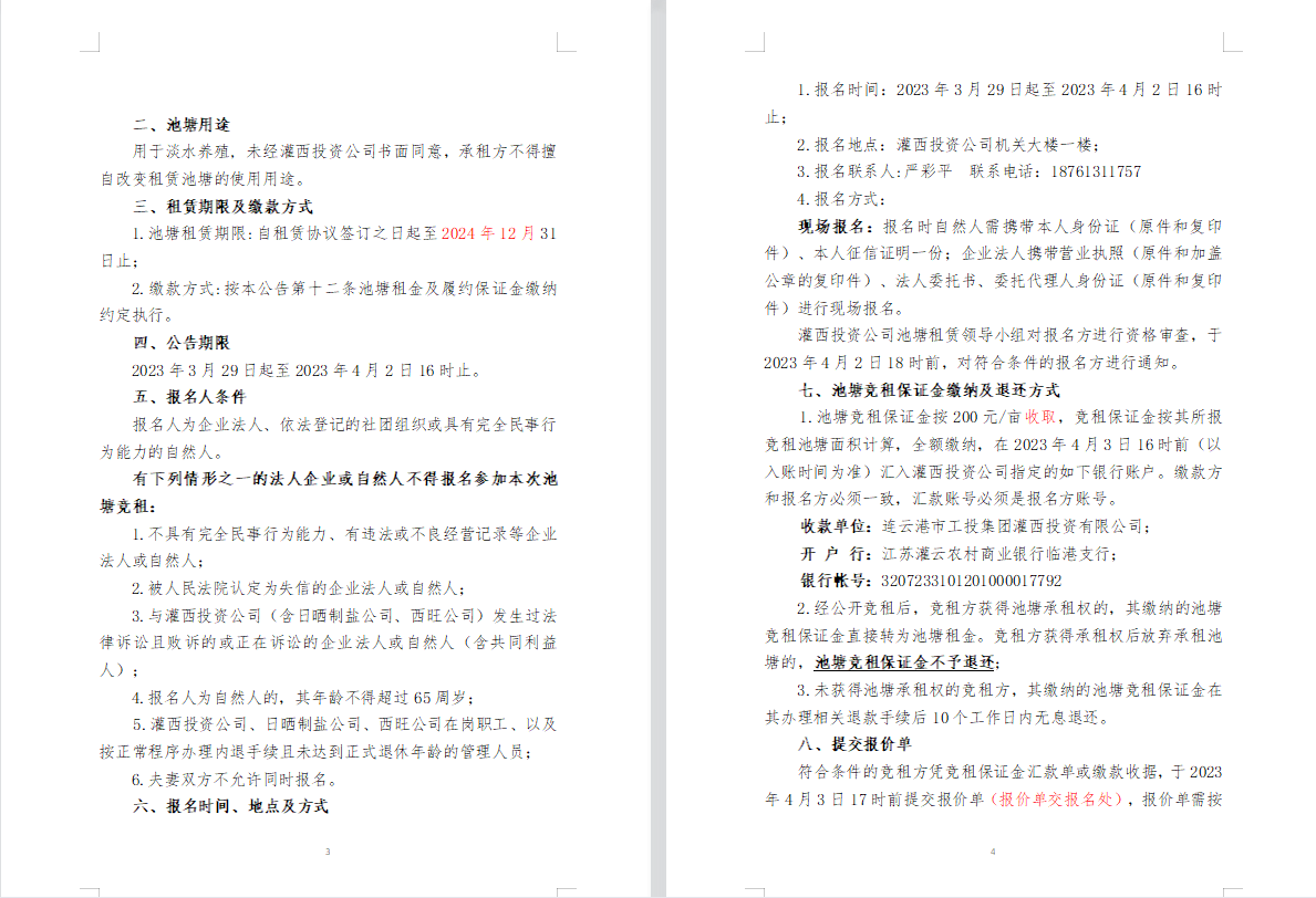 連云港市工投集團(tuán)灌西投資公司2023年度淡水養(yǎng)殖池塘公開(kāi)競(jìng)租第二次公告