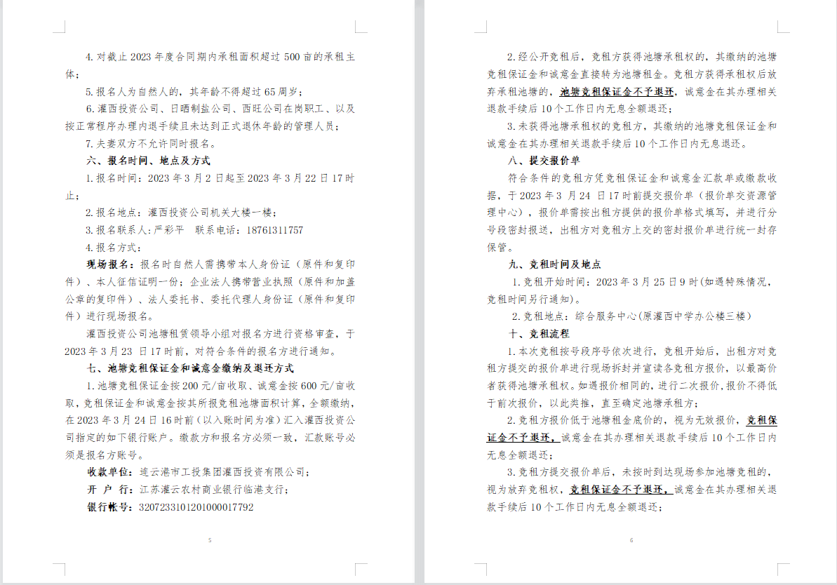 連云港市工投集團灌西投資公司2023年度淡水養殖池塘公開競租公告