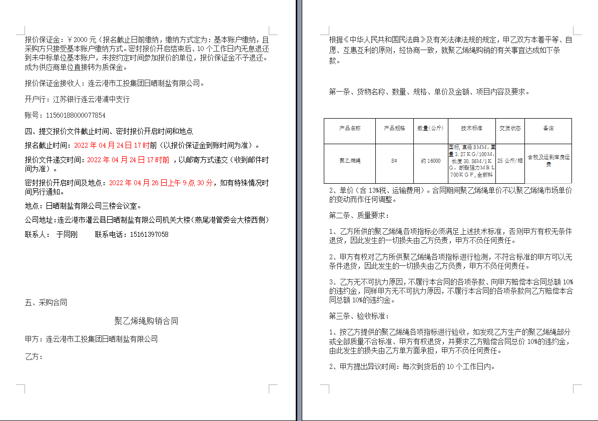 連云港市工投集團日曬制鹽有限公司聚乙烯繩采購項目