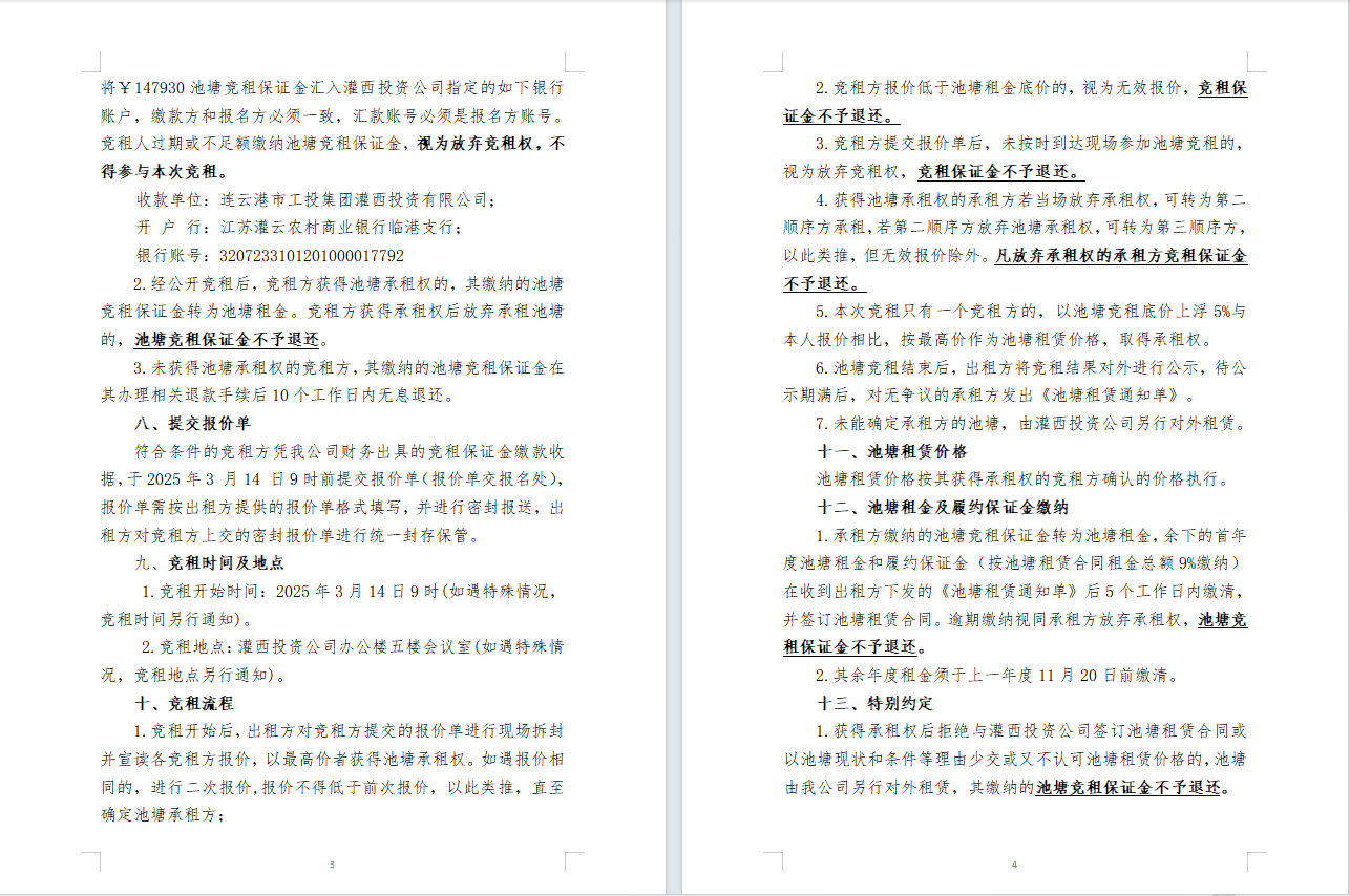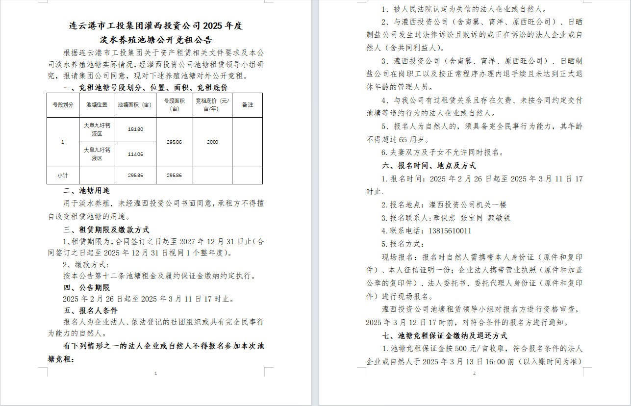 連云港市工投集團(tuán)灌西投資公司2025年度淡水養(yǎng)殖池塘公開(kāi)競(jìng)租公告
