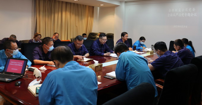 9月29日下午,我公司黨委召開全面從嚴治黨專題會議,黨委副書記、紀委書記、工會主席曹開明主持,公司領導班子成員、各車間單位黨政負責人、各部室負責人參會。
