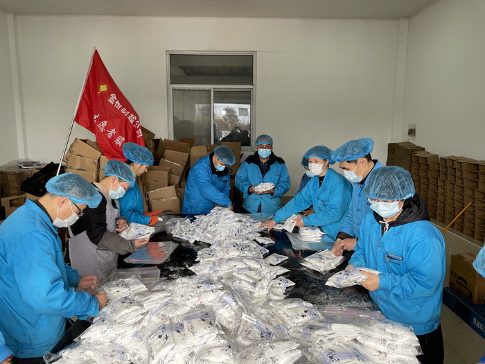 近期,根據客戶需要,金橋制鹽公司網店為天貓超市提供個性化需要配套產品,訂單數量激增。125日,公司機關組織黨團志愿者到車間參與手工包裝鹽產品,單日封裝鹽產品3.5噸。(金宣)