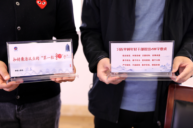 ? ? ? ?會(huì)后,公司紀(jì)委為10名新提拔干部發(fā)放了廉潔承諾桌牌,提醒他們常把“廉”字記心間,扣好廉潔從業(yè)的“第一粒扣子”。(青紀(jì))