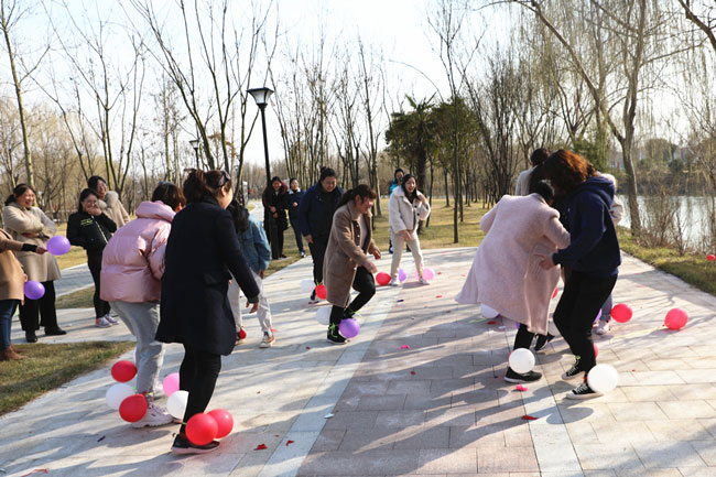 為使大家身心得到最大放松,投入戶外體驗(yàn)清新大自然,在絲路小鎮(zhèn)公園進(jìn)行了“三月女人天 別樣?jì)D女節(jié)”主題戶外活動(dòng)。游戲“你畫(huà)我猜”中,隊(duì)員們有的配合默契一猜既中,也有的用肢體艱難的比劃著,引的大家捧腹大笑。“踩氣球”游戲更是讓現(xiàn)場(chǎng)氣氛達(dá)到沸點(diǎn),每人都放開(kāi)平日工作中的嚴(yán)謹(jǐn),放松心情在場(chǎng)地上追逐奔跑。大家在游戲中收獲了歡聲笑語(yǔ)及片片感動(dòng),同時(shí),通過(guò)游戲提高大家的合作意識(shí)和進(jìn)取精神,營(yíng)造濃郁節(jié)日氣氛。