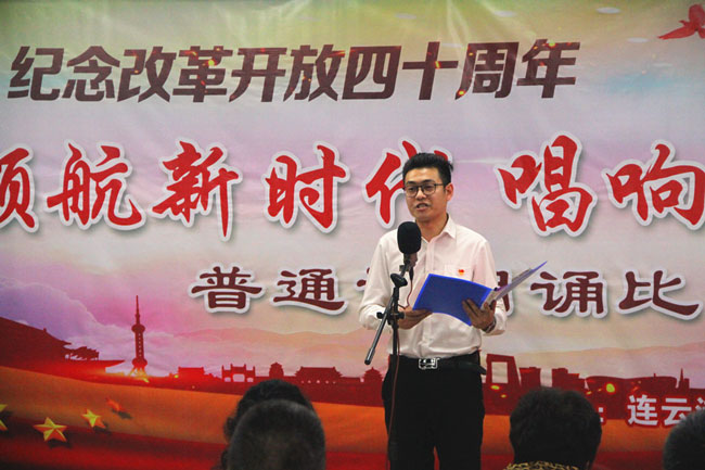 為了紀念改革開放四十周年,引導和激勵廣大職工圍繞 “高質發(fā)展、后發(fā)先至”主題主線,為建設“強富美高”新青口、開啟青口發(fā)展新征程貢獻力量。12月11日下午,青口公司黨委隆重舉行“領航新時代 唱響青口夢”紀念改革開放40周年普通話朗誦比賽。活動邀請到連云港市語委辦副主任、詩朗誦藝術家協(xié)會副主席朱衛(wèi)文,國家級普通話測試員、市朗誦藝術家協(xié)會副秘書長李蕾、主任播音員、市朗誦藝術家協(xié)會副主席朱平擔任評委。公司領導班子 及 全體管理人員參加活動