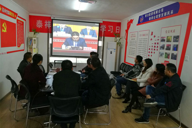 4月8日上午,青口投資公司以9個支部為單位,組織近百余名干群集中收看了全市“高質發展 后發先至”動員大會電視直播。