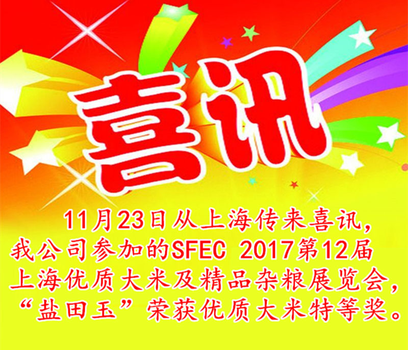 【喜訊】 “鹽田玉”大米再獲特等獎(jiǎng)!