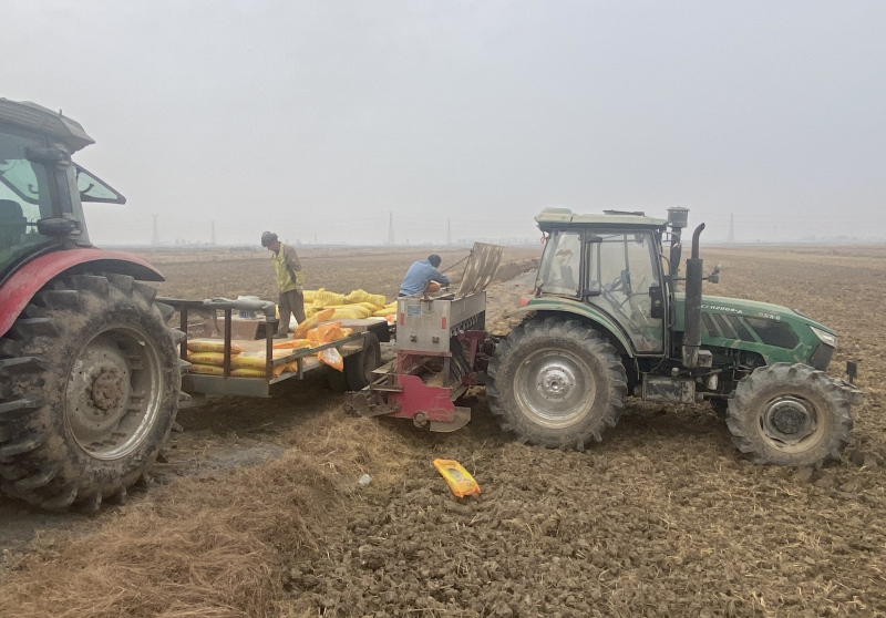 近日,大新農(nóng)場(chǎng)積極組織小麥地開溝施肥播種作業(yè)。工作人員在農(nóng)場(chǎng)的小麥種植區(qū)忙著翻犁、整土、施肥,有序推進(jìn)小麥種植工作。(王璐)