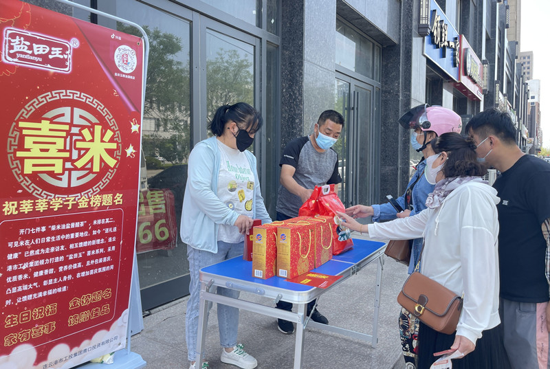 又是一年高考季,米業營銷中心搶抓“升學宴”商機,到贛榆區各考點開展“鹽田玉”喜米宣傳活動,走近學生家長,為考生加油。同時,通過現場介紹、發放宣傳頁、關注抖音號等形式,為“升學宴”用米打好前戰。(米業營銷中心)