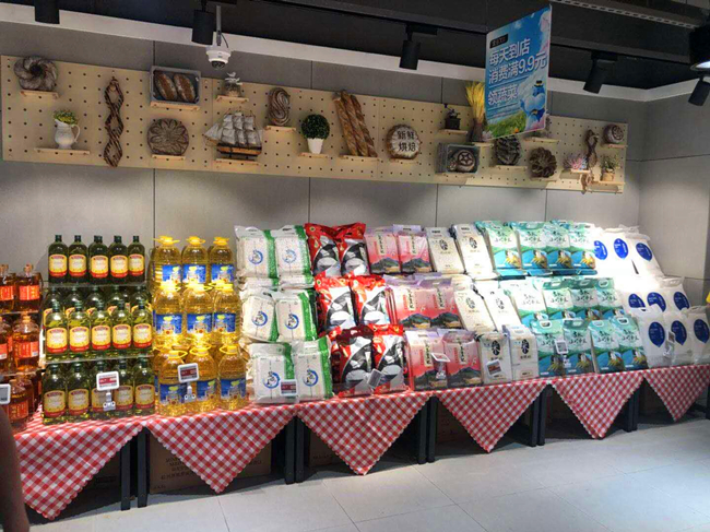 ? ?近期,米業營銷中心把銷售瞄準南京市場,通過與南京秦邦吉品農業開發有限公司合作,進軍新零售市場,首批2.5公斤和5公斤白真空包裝的“鹽田玉”大米已擺上南京盒馬超市的貨架,南京市民可以吃上綠色“鹽田玉”大米。(米業營銷中心)