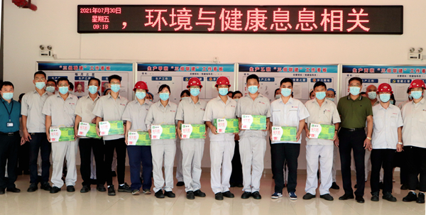 劉承志主席為生產(chǎn)一線員工送來牛奶、綠豆、白糖、大米等防暑降溫慰問品,細心叮囑要認(rèn)真做好防暑降溫和疫情防控工作,確保平安度過夏天。(神特宣)