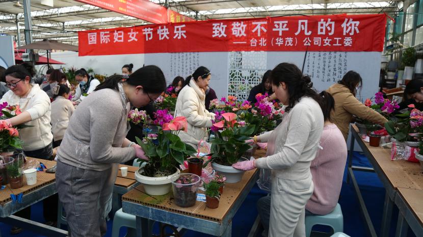 ? ? 情暖三月,巾幗芳菲相競妍。在“三八”國際婦女節(jié)來臨之際,為展現(xiàn)公司女干靚麗風(fēng)采,豐富文化生活,36日下午,臺北(華茂)公司工會組織50余名女工代表在市振興花卉城開展“國際婦女節(jié)快樂 致敬不平凡的你”慶婦女節(jié)插花活動,展現(xiàn)新時(shí)代女性風(fēng)采。