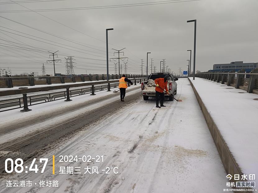 ? ? 本次除雪采取隨降隨清、連續(xù)作業(yè)的方式,及時(shí)、快速清理路面積雪,同時(shí)根據(jù)積雪厚度,采取撒融雪劑、推雪以及人工配合等多種除雪方式進(jìn)行緊急除雪除冰作業(yè)。