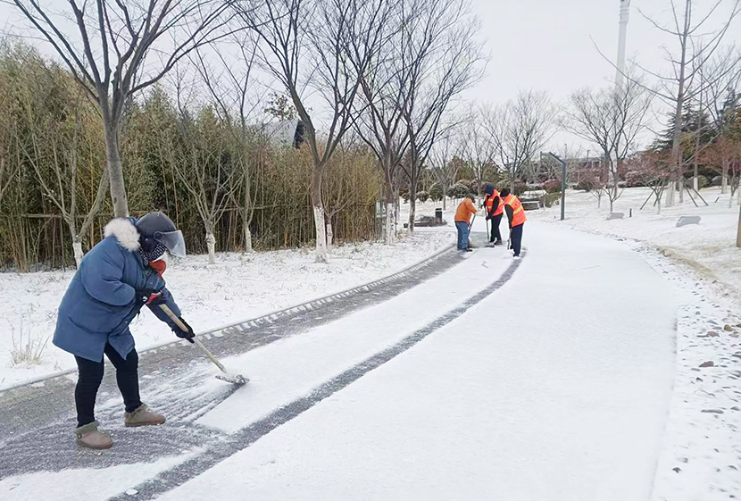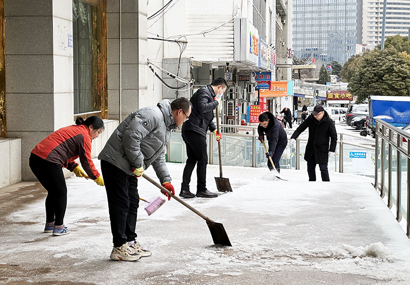 ? ? 機(jī)關(guān)管理人員全員出動(dòng),與東園社區(qū)聯(lián)動(dòng),掃除街邊、道路、小區(qū)、商鋪等門前積雪,確保周邊居民出行安全。