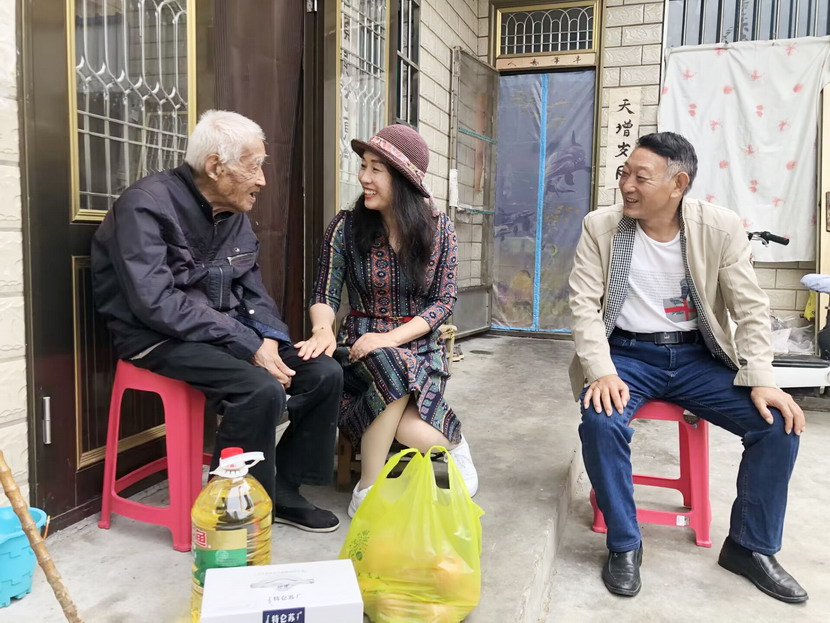 只見今年已105歲高齡的江爺爺,語言表達能力雖逐漸減弱,但他用他那獨特的微笑方式對我們的到來表示歡迎。當得知老人耳朵聽不清,但身體狀況良好時,猴嘴辦工作人員向老人送上慰問品并祝愿老人健康長壽。江爺爺的兒子動情地說道:“感謝企業在逢年過節時都不忘記這些老人,我們作為兒女,也一定會孝敬好老人、守護好老人健康。”