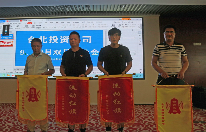 會上還頒發月度生產經營“流動紅旗”及“警鐘”旗。