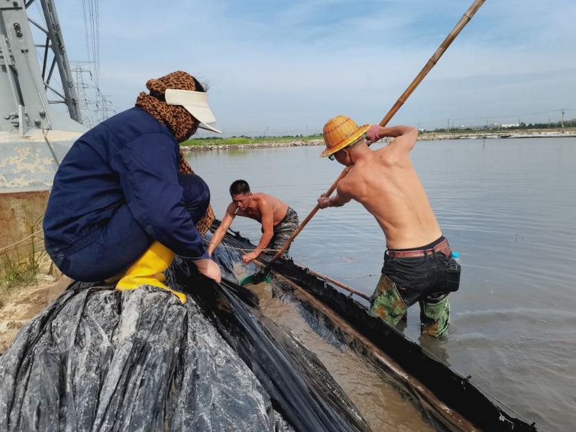 回程途中,我們又經過鈣液生產灘地,廣大職工在鈣液銷售旺季,趕進度、搶工期。在海濱泵站,徐松保師傅正在室外查看鈣液計量表,為鈣液車開具單據。據了解,他一天在室外要為20余輛鈣液車開單子,中午吃頓飯出出進進幾次才能吃完,衣服濕了干,干了濕,十分辛苦!在先鋒泵站,程輝師傅撩起工作服擦了擦臉上的汗水,繼續將潛水泵安置到已廢棄的灘地里,把灘地里的雨水抽干,將廢棄的灘地利用起來晾曬低濃度的鈣液,解決銷售旺季成品鈣液供不應求難題。用廣大職工的話:天氣再熱,困難再多,也擋不住我們沖刺生產18萬方鈣液的腳步。