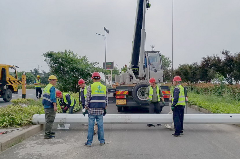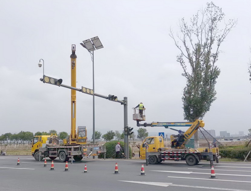 隨后,筆者一行,頂著烈日,驅車前往翔立分公司市政工程現場,在封閉的道路內,翔立公司一群黃馬甲戰士,正頂著烈日在緊張的進行交通監控探頭安裝工作。據了解他們也是5點多種就到崗位上來了。經理喬以成帶著兩名員工站在高高的升降機上,鉗子、扳手、鏍絲刀,各種工具在他們手里輪番操作,汗水已將其工作服的前胸后背浸透。好不容易等到他們安裝完一組探頭下來,我們一邊遞水,一邊采訪,老喬擰開瓶蓋,一口氣喝下半瓶,這才回答我們的問題:“不能不拼啊,我們離盈利還有不小的缺口,現在全公司、全集團都在解放思想提質增效,不干、不努力哪里來的增效啊!